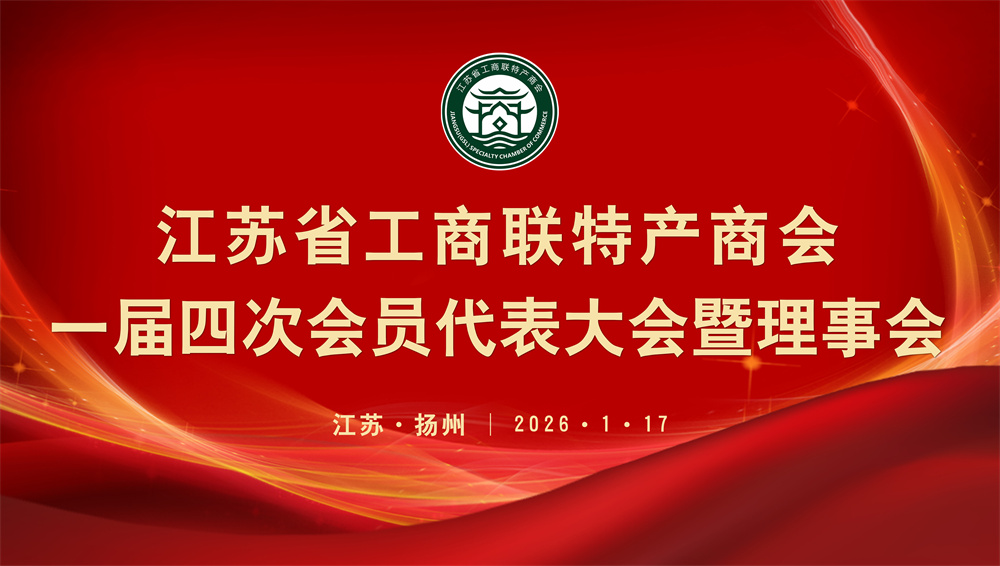 2026年1月17日下午,江苏省工商联特产商会一届四次会员代表大会暨理事会在扬州花园国际大酒店隆重召开。来自全省各地特产行业的120余位会员代表及领导嘉宾齐聚一堂,共话发展机遇,共谋发展新篇。江苏省工商联特产商会会长、党支部书记朱章其,执行会长陈志蔚,常务副会长张洪孝,监事长朱俊逸,副会长孙华靖、徐颖宏、林广